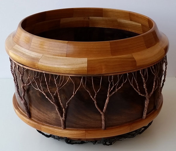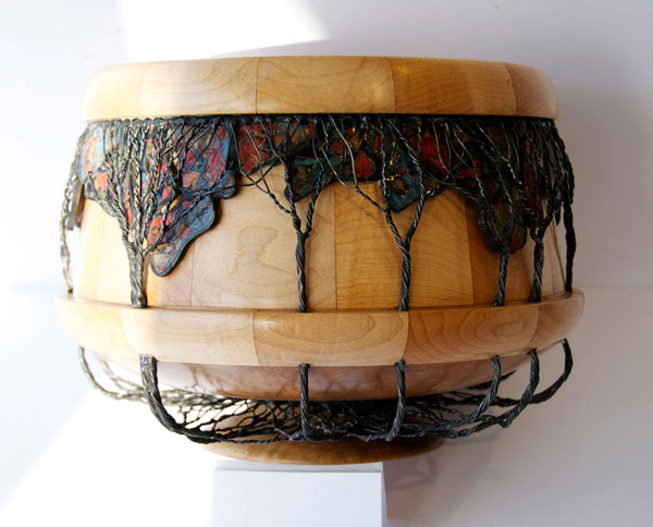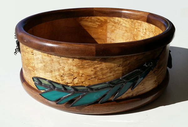 Curly Maple Bowl • Wire Trees and Stained Iridescent Glass