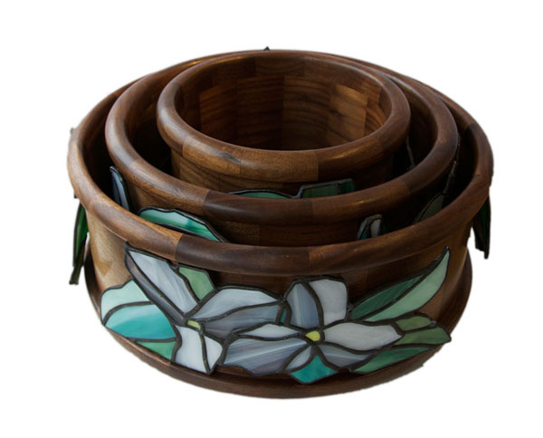 Walnut and Maple Bowls • Wire Trees and Glass Trilliums